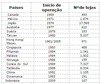 7‑Eleven ao redor do mundo Após 88 anos de operação, veja como se espalharam pelo mundo: